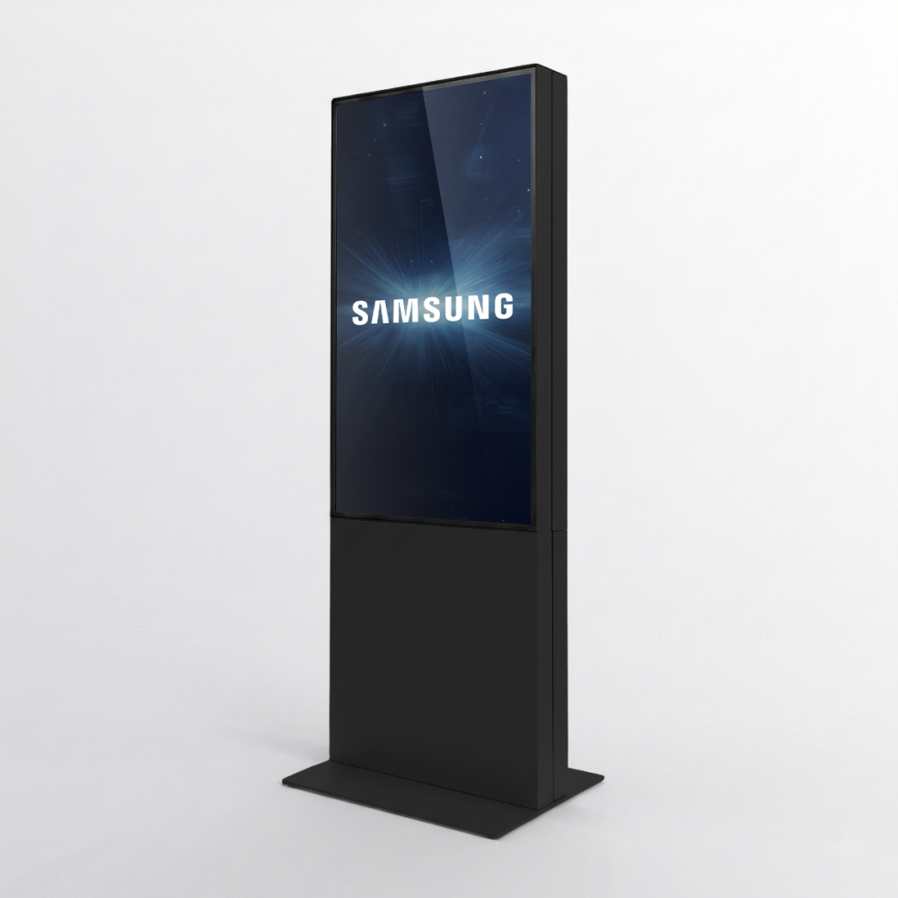 Die Stelen überzeugen durch brillantes Bild, langlebige Technik und edles Design. Dank Plug-and-Play-System sind sie sofort einsatzbereit – ohne komplizierte Einrichtung.